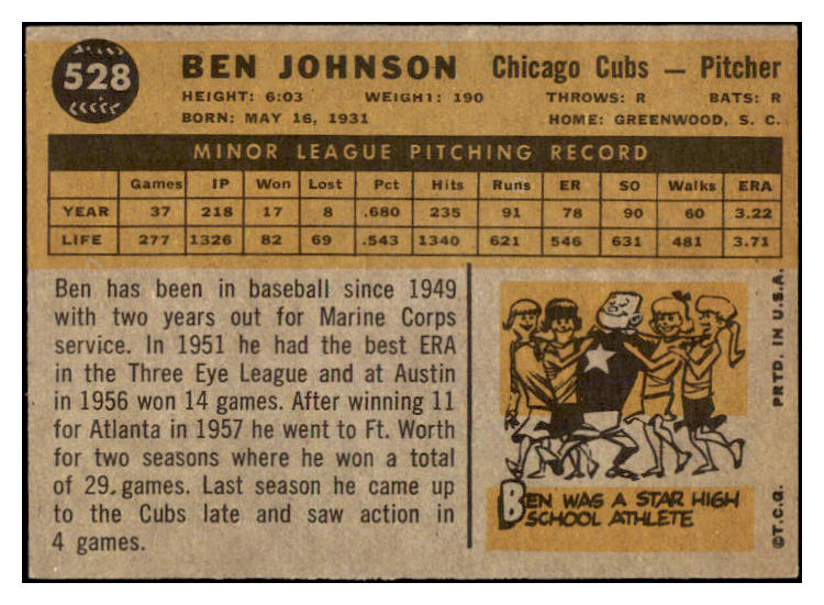 1960 Topps Baseball #528 Ben Johnson Cubs EX 527811