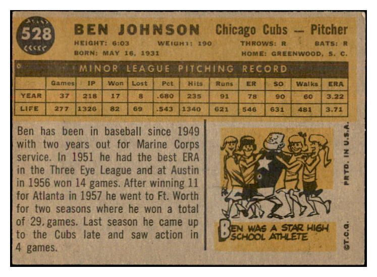 1960 Topps Baseball #528 Ben Johnson Cubs EX-MT 534326