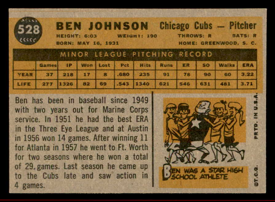 1960 Topps Baseball #528 Ben Johnson Cubs NR-MT 542672