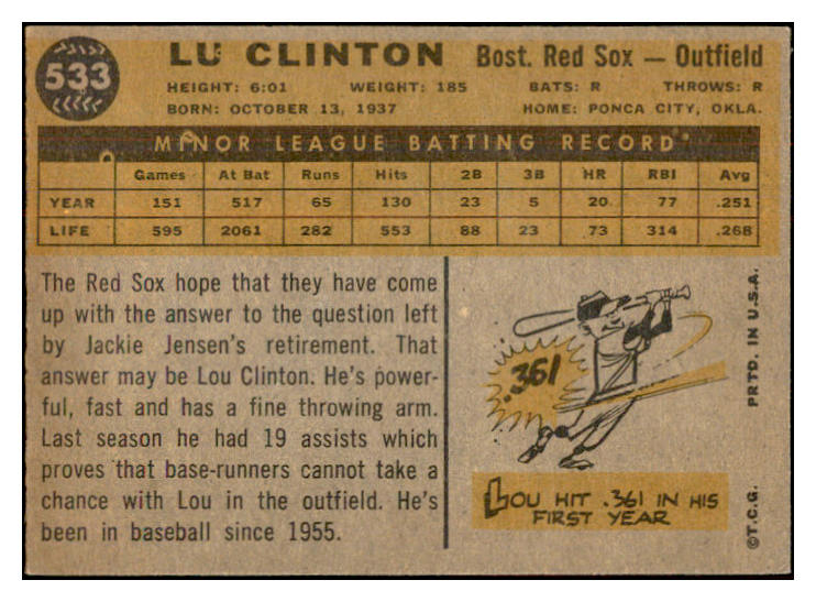 1960 Topps Baseball #533 Lou Clinton Red Sox EX 534342