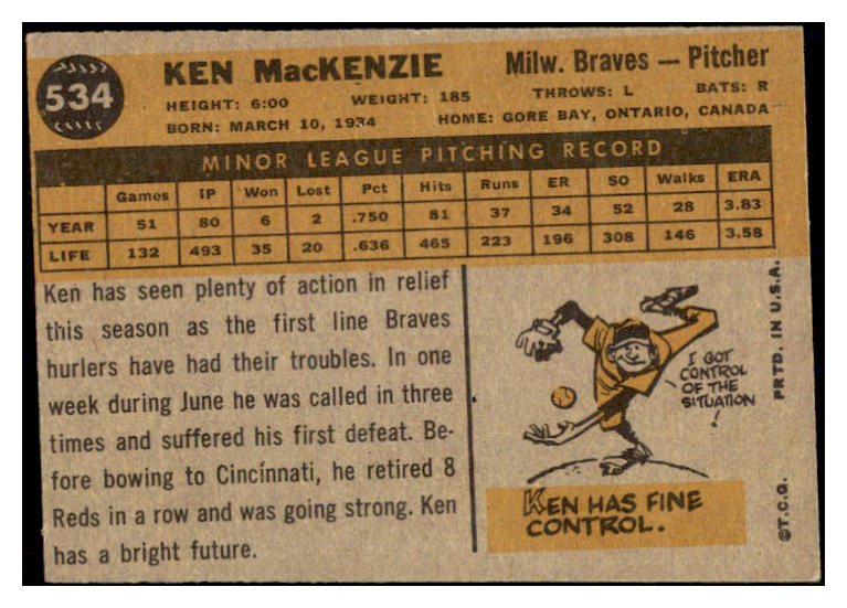 1960 Topps Baseball #534 Ken MacKenzie Braves EX 527804