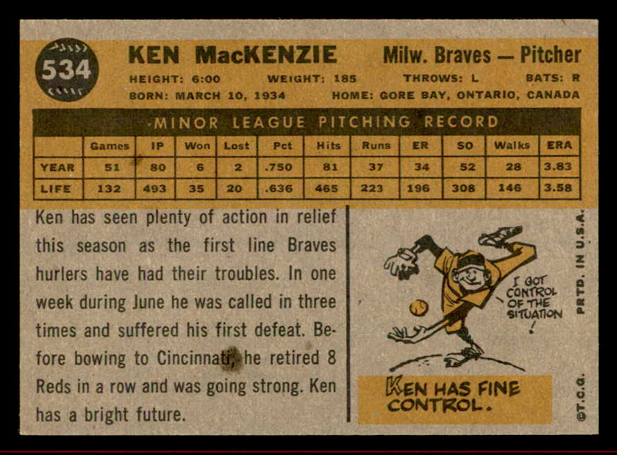 1960 Topps Baseball #534 Ken MacKenzie Braves NR-MT 542675