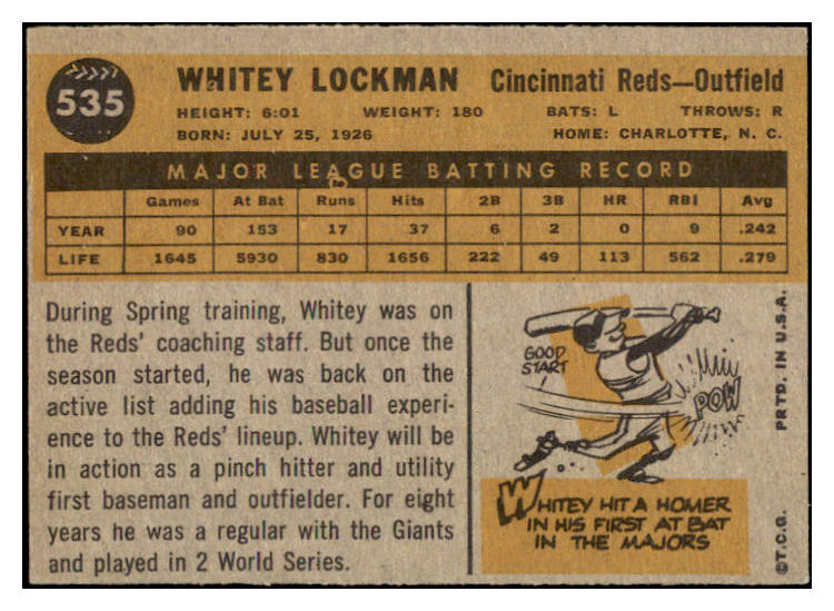 1960 Topps Baseball #535 Whitey Lockman Reds EX+/EX-MT 527837