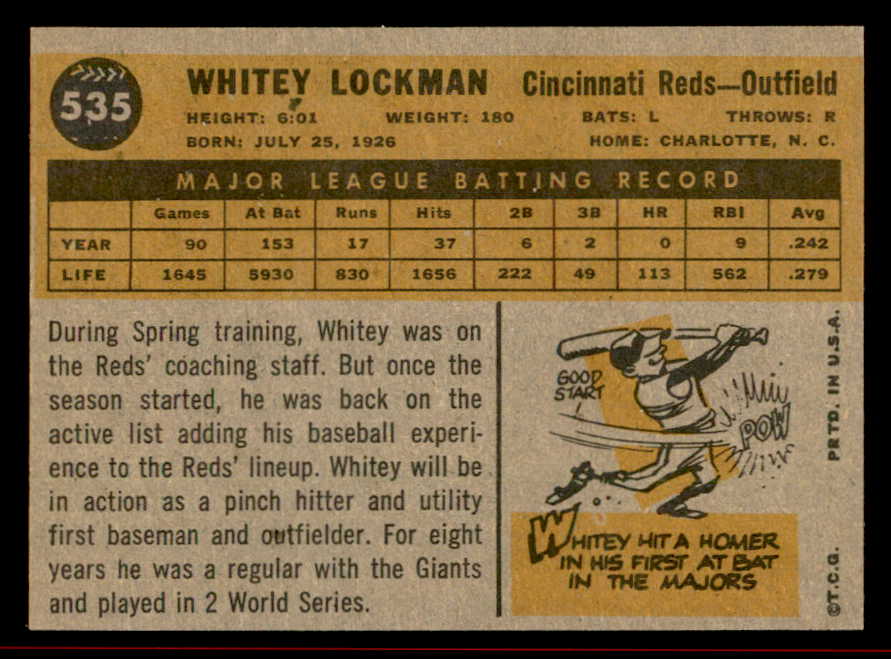 1960 Topps Baseball #535 Whitey Lockman Reds NR-MT 542676