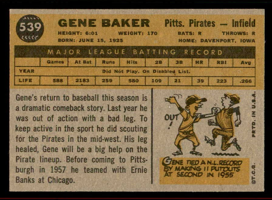 1960 Topps Baseball #539 Gene Baker Pirates EX-MT 542708