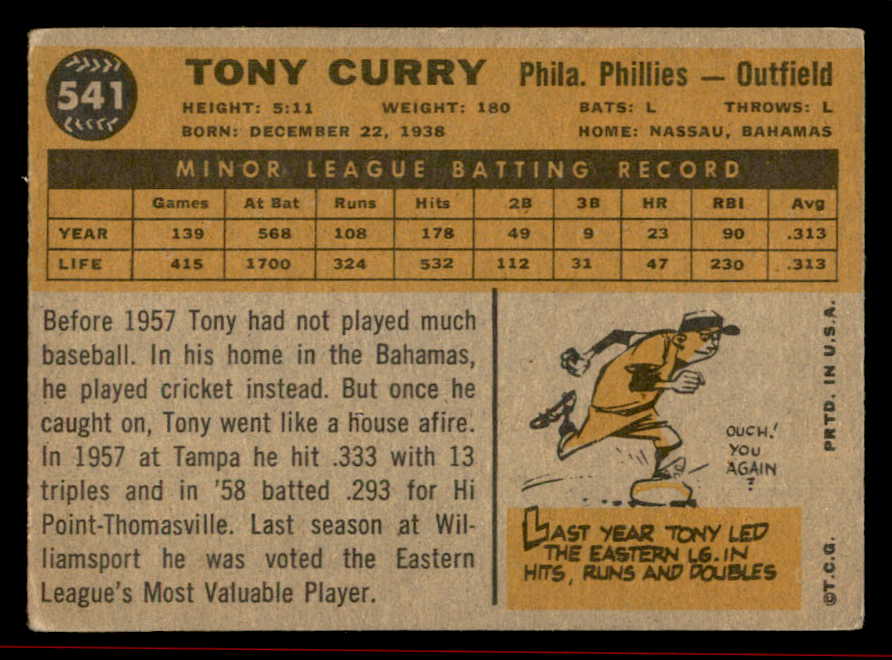 1960 Topps Baseball #541 Tony Curry Phillies VG-EX 542752