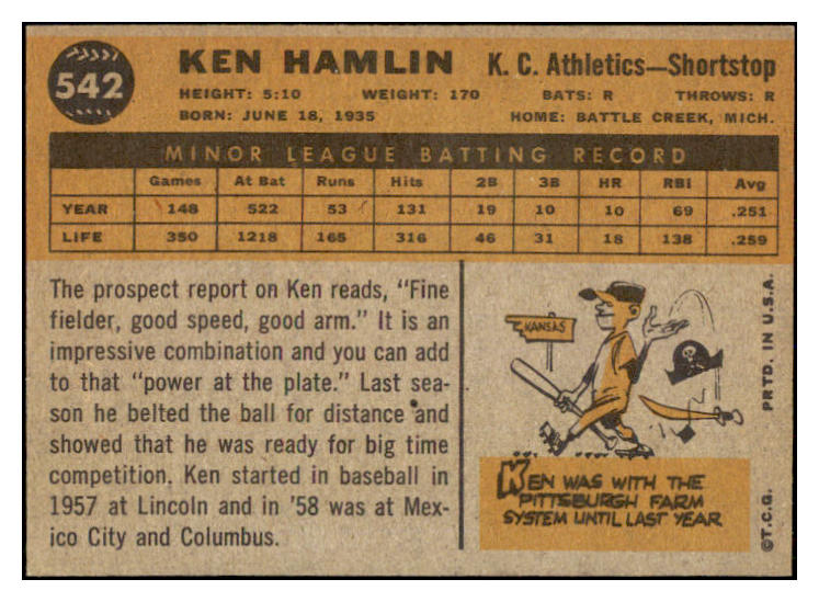 1960 Topps Baseball #542 Ken Hamlin A's EX+/EX-MT 527836