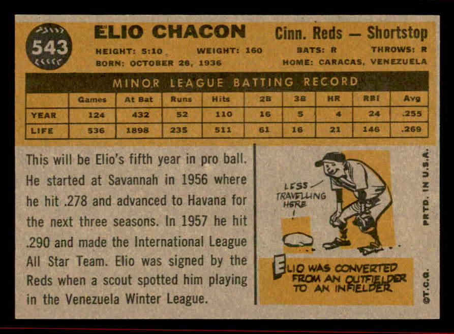 1960 Topps Baseball #543 Elio Chacon Reds NR-MT 542679