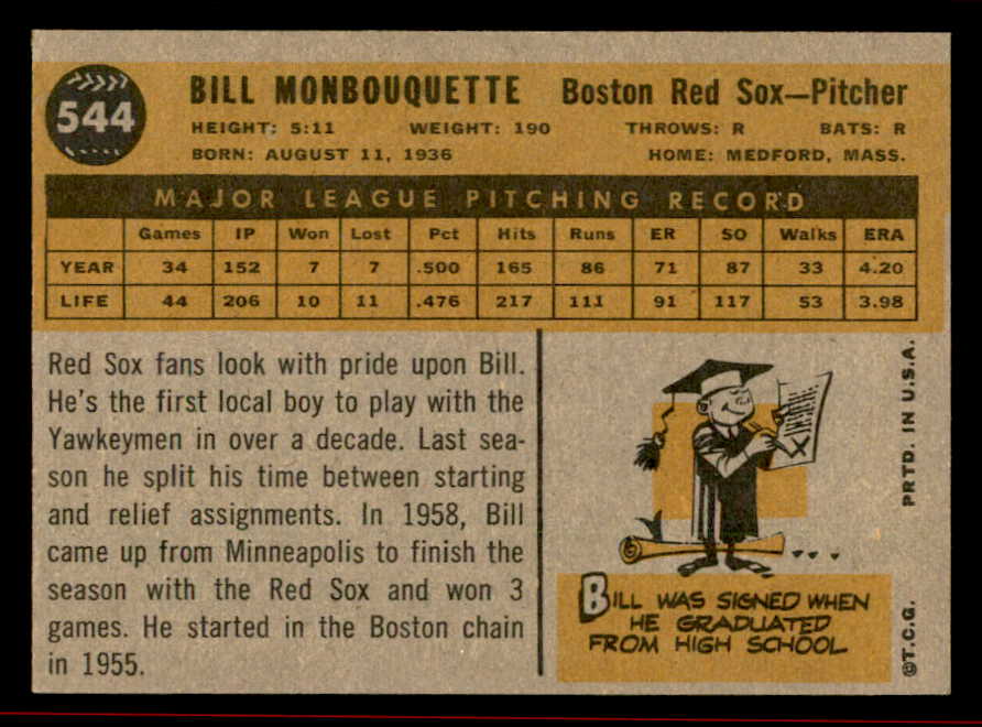 1960 Topps Baseball #544 Bill Monbouquette Red Sox NR-MT 542680