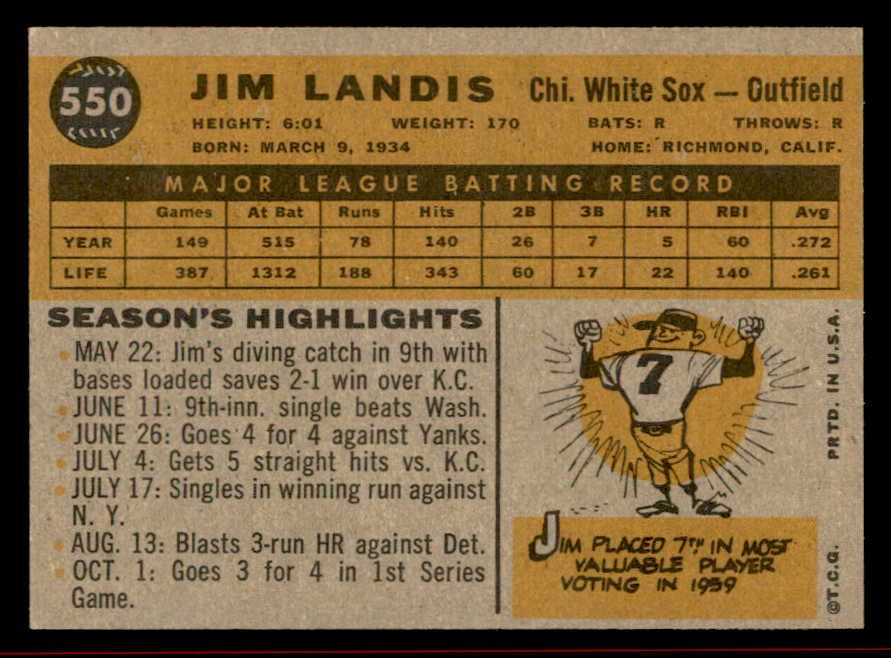 1960 Topps Baseball #550 Jim Landis White Sox NR-MT 542686