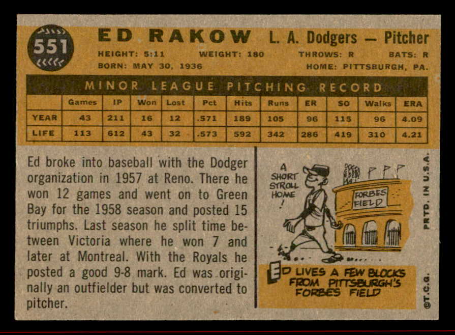 1960 Topps Baseball #551 Ed Rakow Dodgers NR-MT 542687