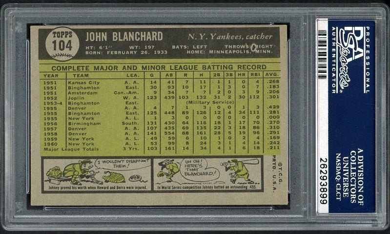 1961 Topps Baseball #104 John Blanchard Yankees PSA 7.5 NM+ 538136