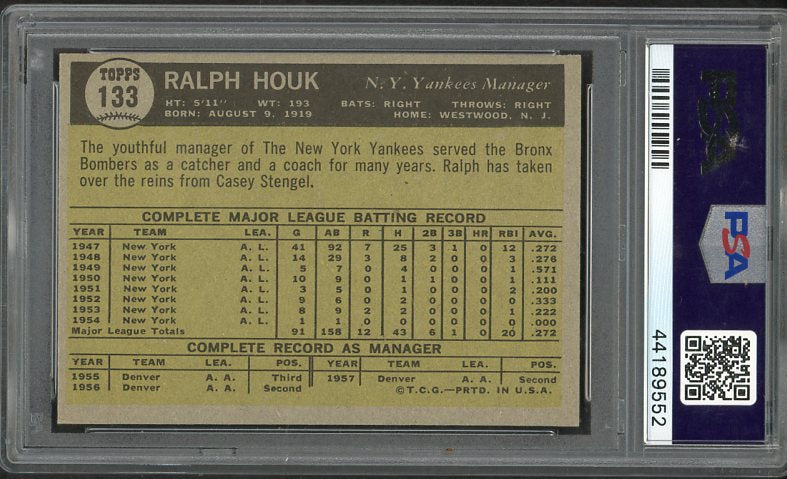 1961 Topps Baseball #133 Ralph Houk Yankees PSA 7 NM 538129