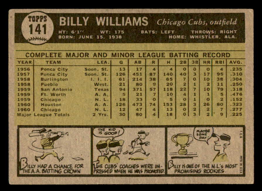 1961 Topps Baseball #141 Billy Williams Cubs VG-EX 540329