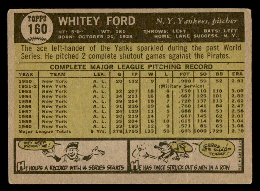 1961 Topps Baseball #160 Whitey Ford Yankees VG-EX 540433