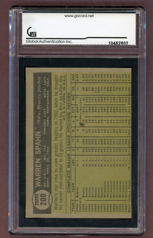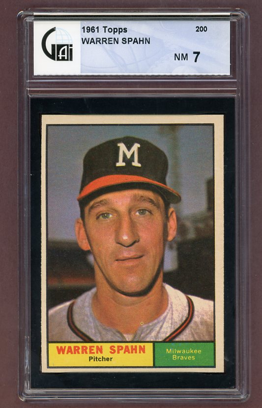 1961 Topps Baseball #200 Warren Spahn Braves GAI 7 NM 526047