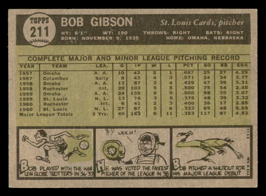 1961 Topps Baseball #211 Bob Gibson Cardinals VG-EX 547121