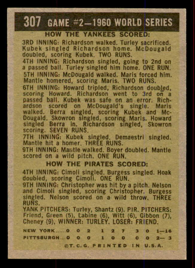 1961 Topps Baseball #307 World Series Game 2 Mickey Mantle EX+/EX-MT 545747