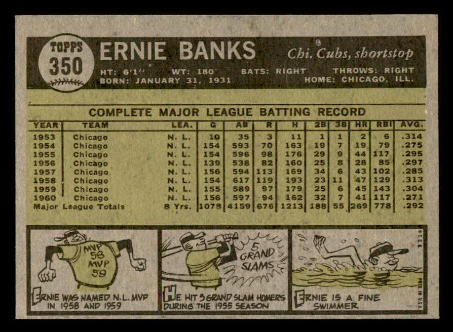 1961 Topps Baseball #350 Ernie Banks Cubs EX-MT 547115