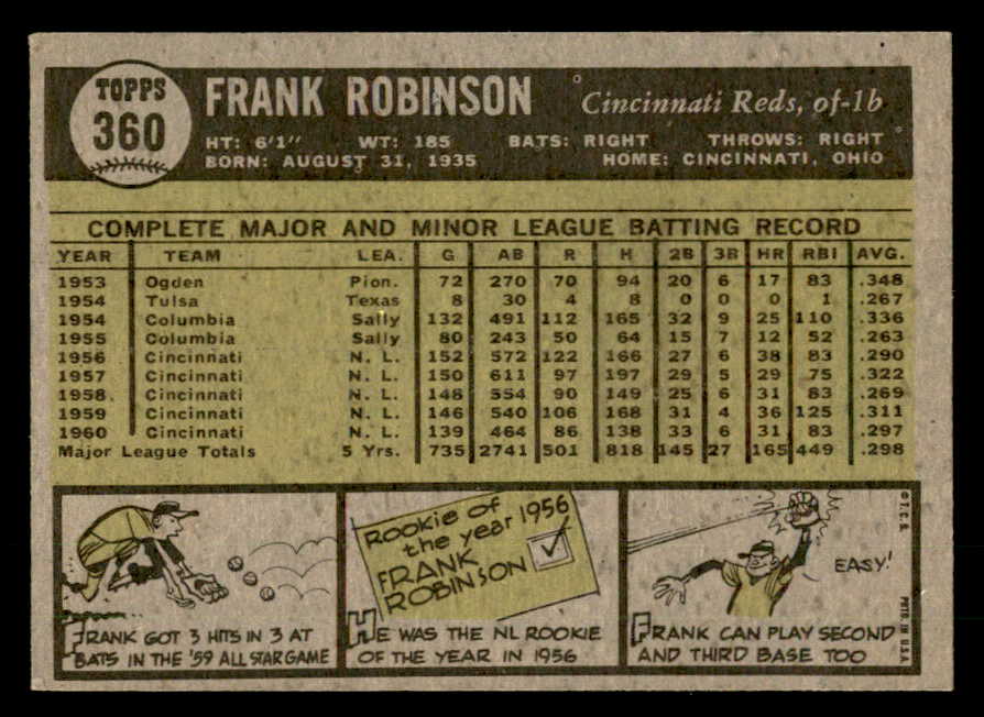 1961 Topps Baseball #360 Frank Robinson Reds EX-MT 547113