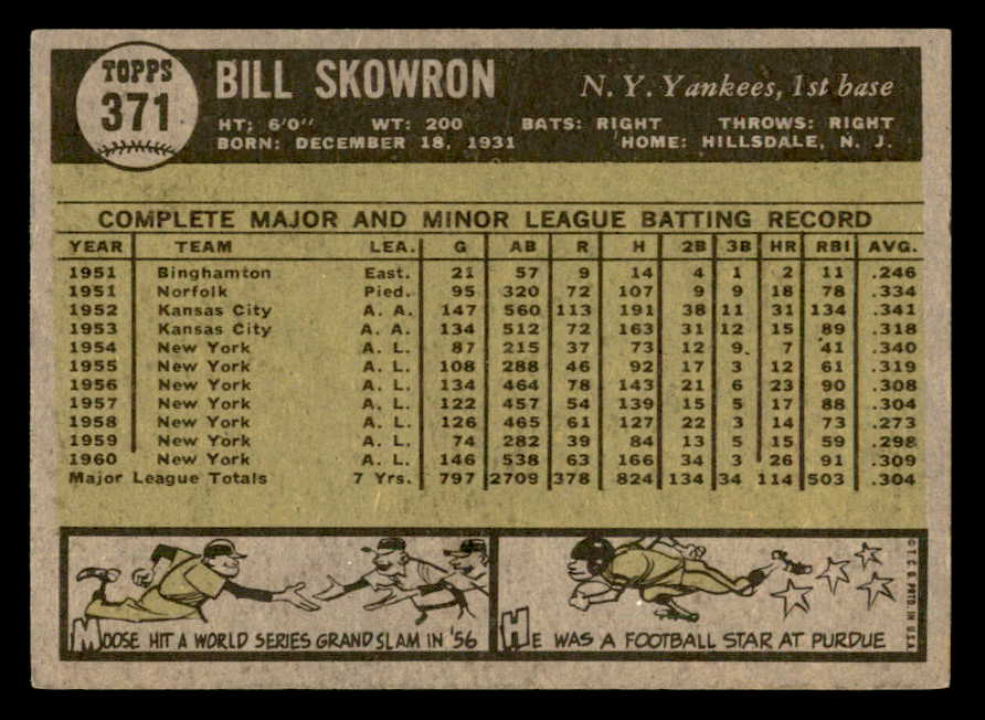 1961 Topps Baseball #371 Bill Skowron Yankees EX-MT 547101
