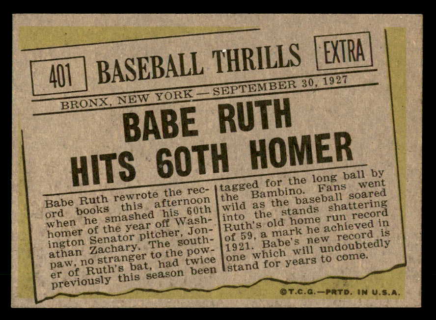 1961 Topps Baseball #401 Babe Ruth Yankees EX-MT 547100