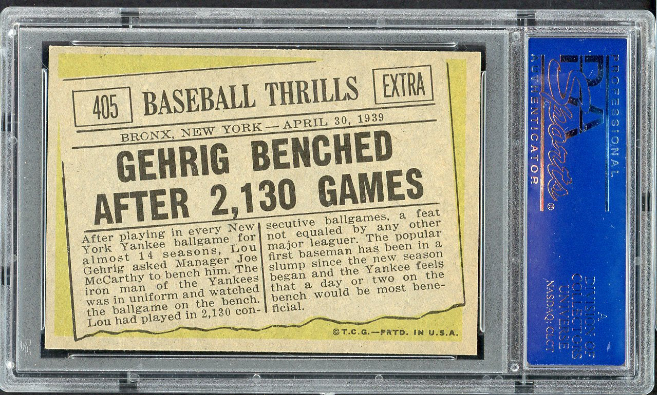 1961 Topps Baseball #405 Lou Gehrig Yankees PSA 5 EX 547503