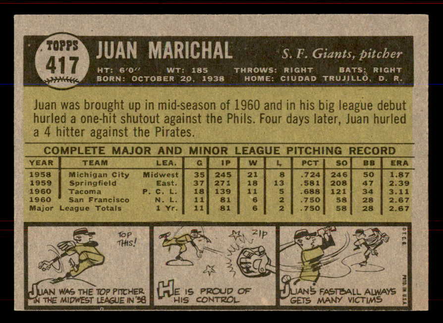 1961 Topps Baseball #417 Juan Marichal Giants EX-MT 545744
