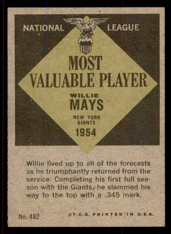 1961 Topps Baseball #482 Willie Mays MVP Giants EX+/EX-MT 545740