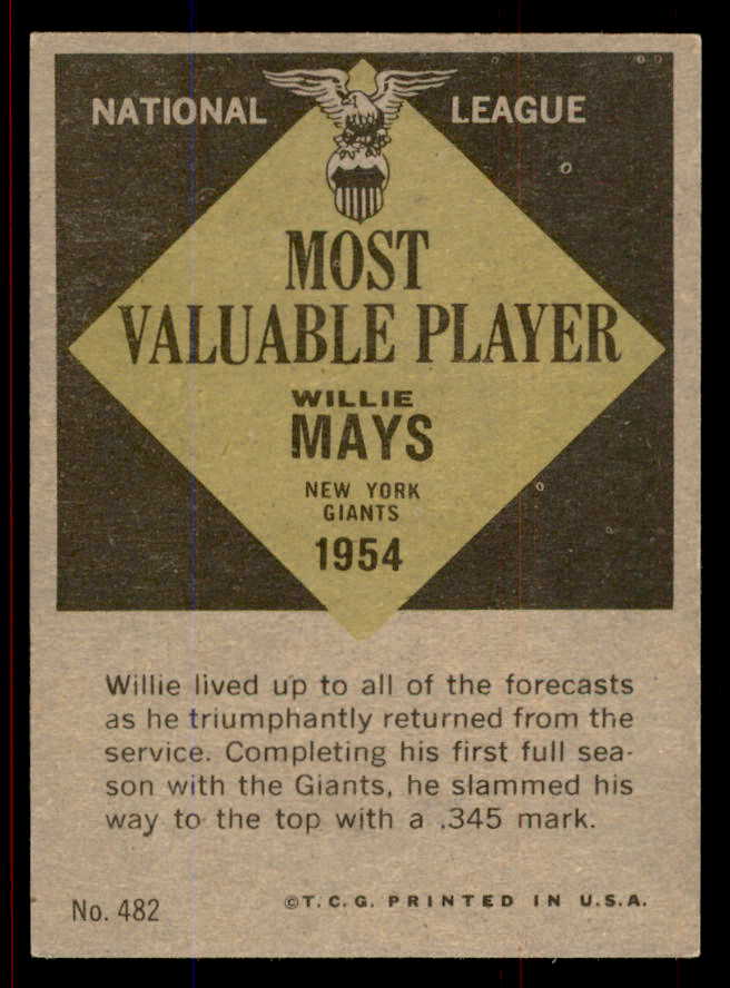 1961 Topps Baseball #482 Willie Mays MVP Giants EX-MT 545739