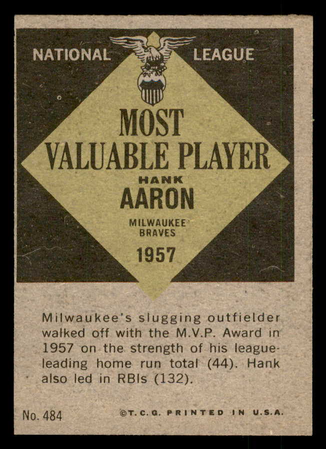 1961 Topps Baseball #484 Hank Aaron MVP Braves EX-MT 547109