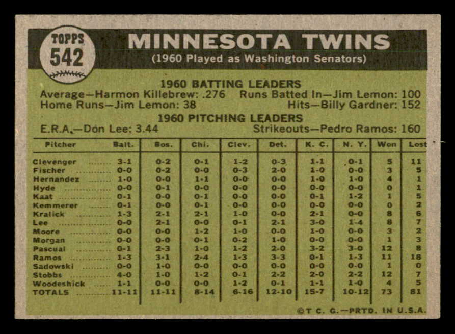 1961 Topps Baseball #542 Minnesota Twins Team EX-MT 547120