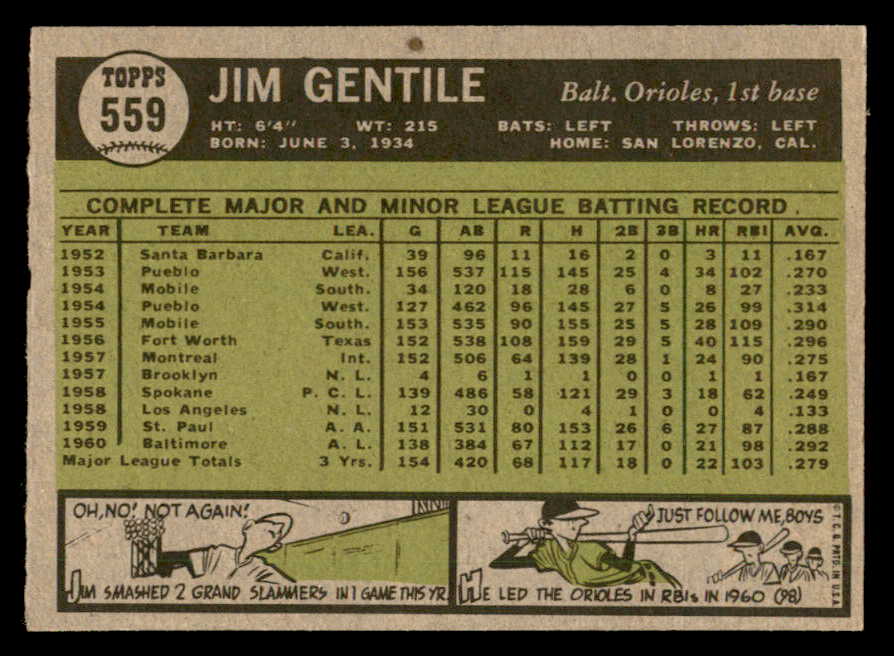 1961 Topps Baseball #559 Jim Gentile Orioles EX-MT 547118