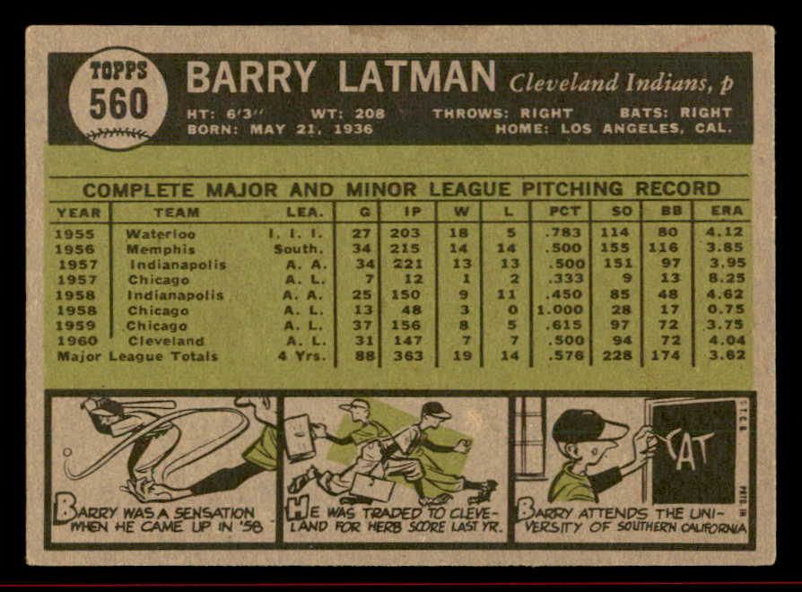 1961 Topps Baseball #560 Barry Latman Indians VG-EX 542807