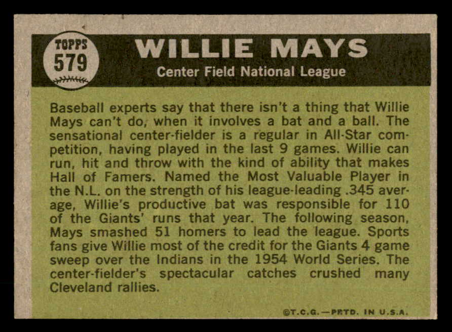 1961 Topps Baseball #579 Willie Mays A.S. Giants EX+/EX-MT 547093