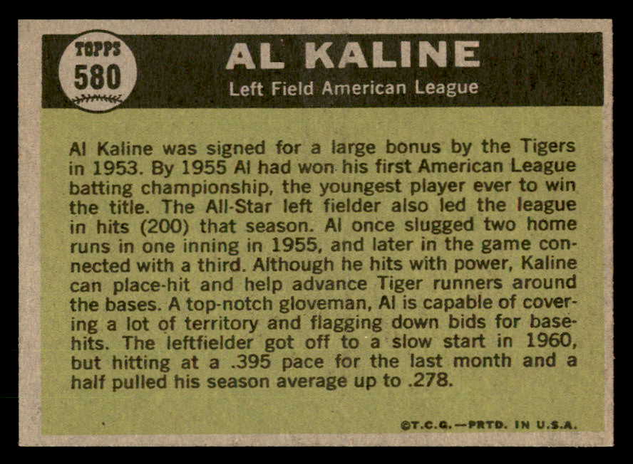 1961 Topps Baseball #580 Al Kaline A.S. Tigers EX-MT 547102