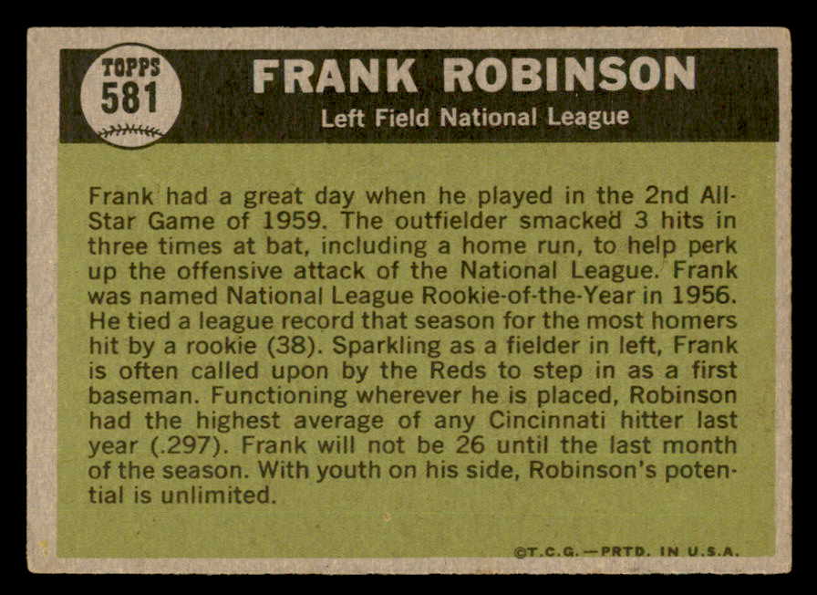 1961 Topps Baseball #581 Frank Robinson A.S. Reds EX+/EX-MT 547103
