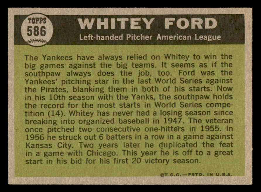 1961 Topps Baseball #586 Whitey Ford A.S. Yankees EX-MT 547098