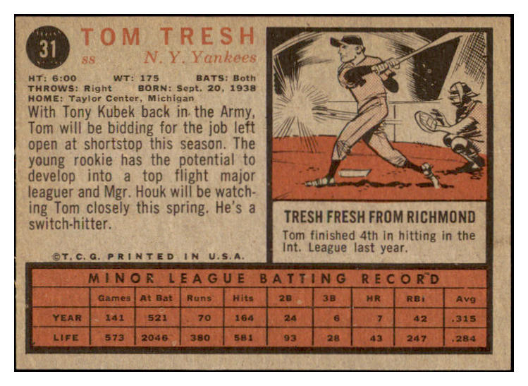 1962 Topps Baseball #031 Tom Tresh Yankees EX-MT 531015