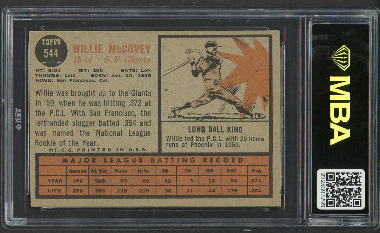 1962 Topps Baseball #544 Willie McCovey Giants MBA 6 EX-MT 546822