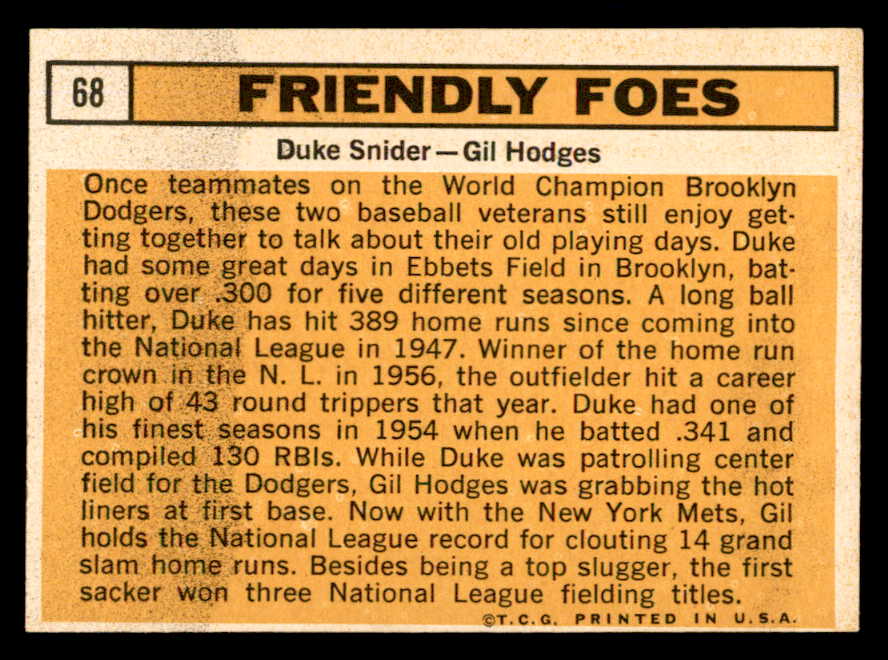 1963 Topps Baseball #068 Duke Snider Gil Hodges VG-EX 540580