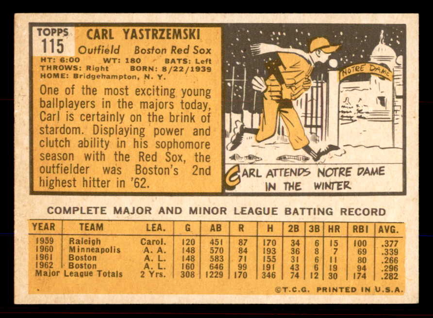 1963 Topps Baseball #115 Carl Yastrzemski Red Sox EX 545370