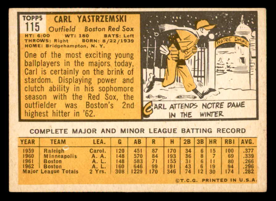1963 Topps Baseball #115 Carl Yastrzemski Red Sox EX+/EX-MT 540592