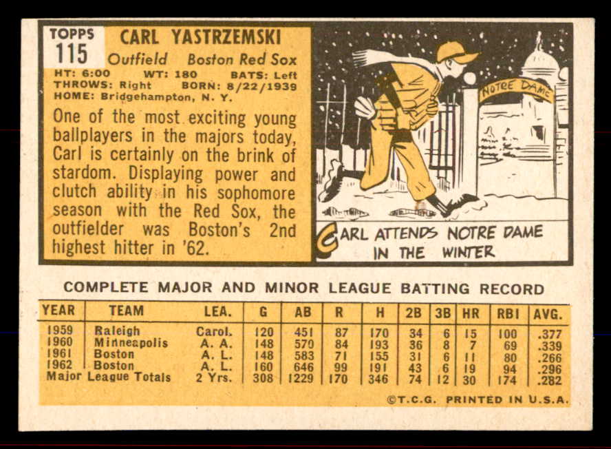 1963 Topps Baseball #115 Carl Yastrzemski Red Sox EX+/EX-MT 545715