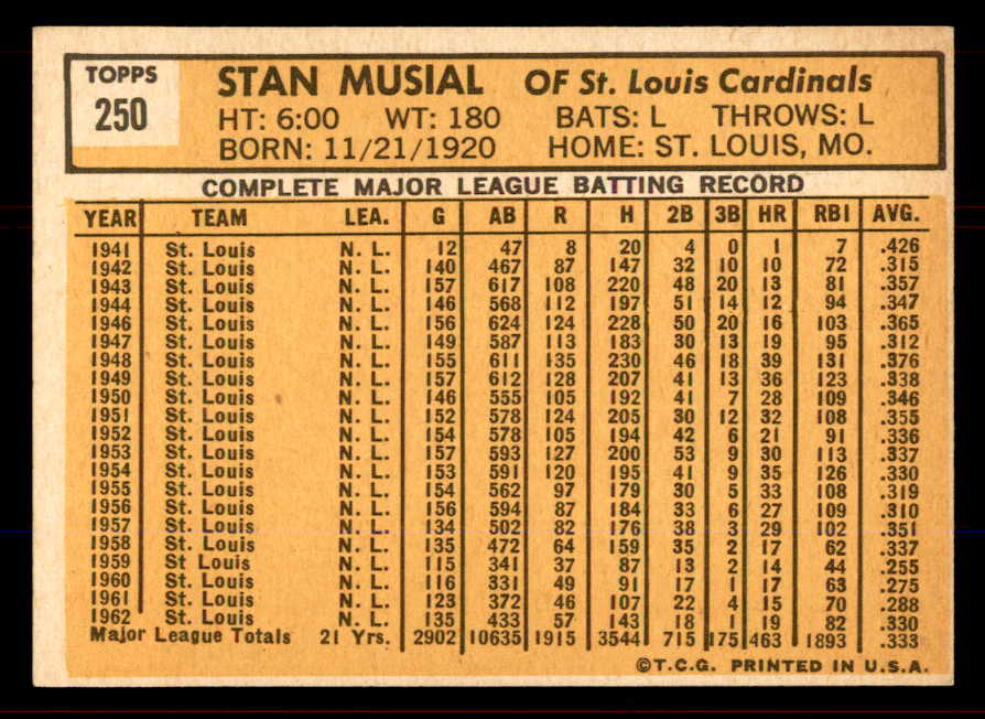 1963 Topps Baseball #250 Stan Musial Cardinals EX+/EX-MT 545719