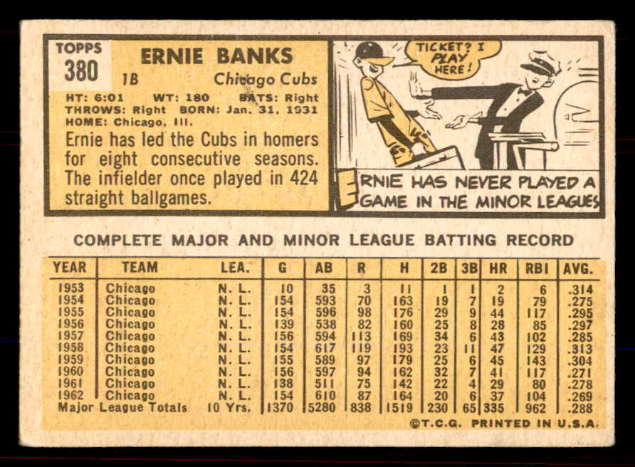 1963 Topps Baseball #380 Ernie Banks Cubs VG-EX 545723