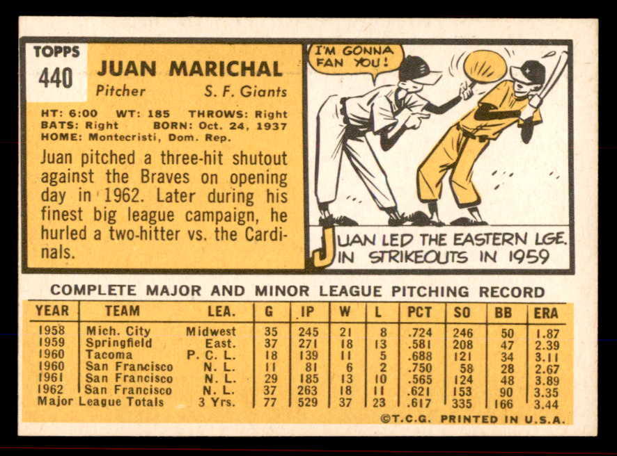 1963 Topps Baseball #440 Juan Marichal Giants EX-MT 545556
