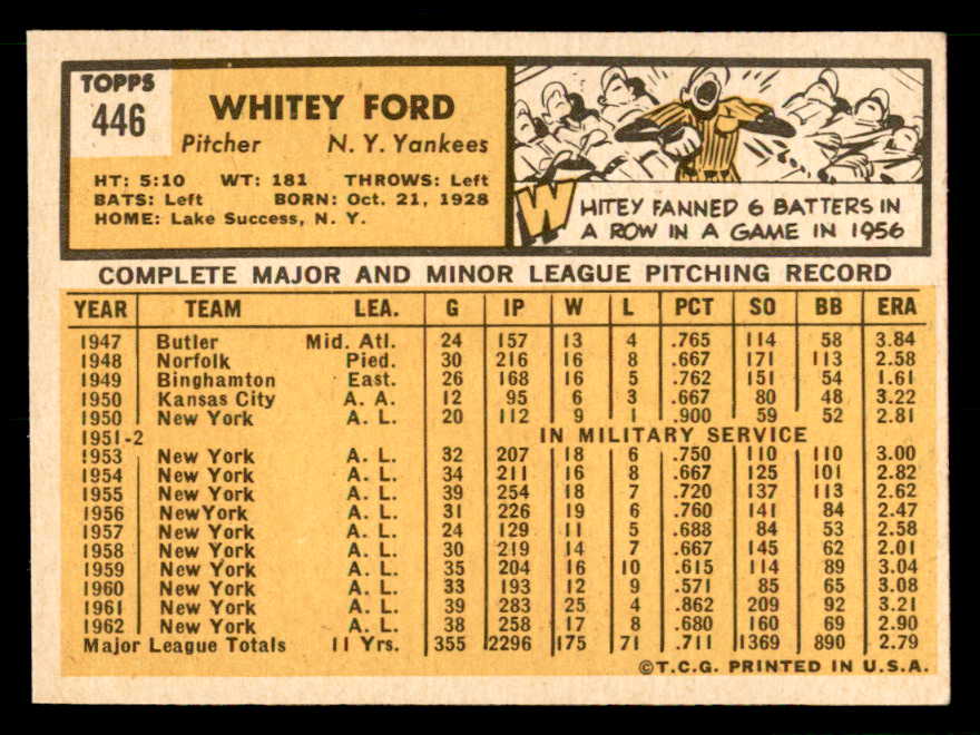 1963 Topps Baseball #446 Whitey Ford Yankees EX-MT 539681
