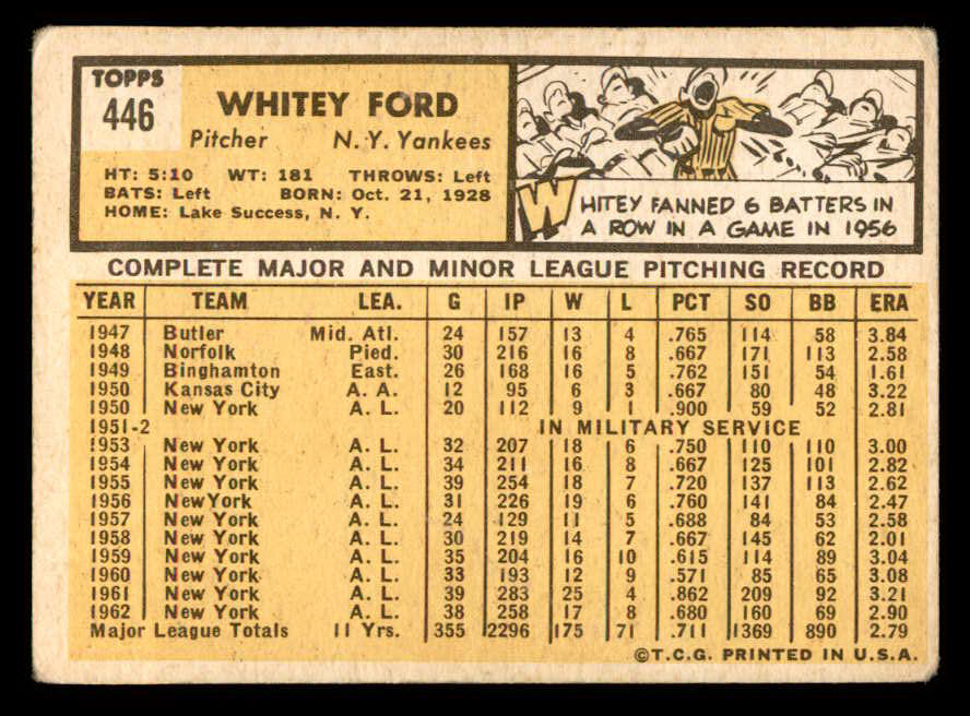 1963 Topps Baseball #446 Whitey Ford Yankees VG 540557