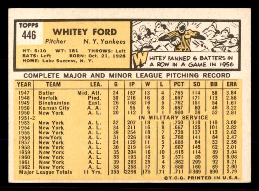 1963 Topps Baseball #446 Whitey Ford Yankees VG-EX 545576